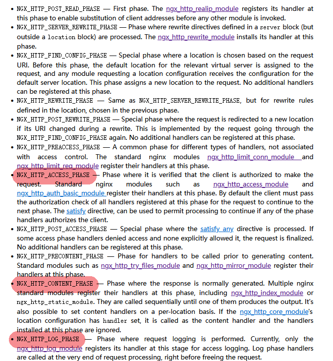 NGX_HTTP_CONTENT_PHASE对应content_by_lua。每个阶段是严格按照从上到下的顺序执行的,如果某个阶段返回了,那么后续的阶段都不会执行(除了最后一个阶段)。