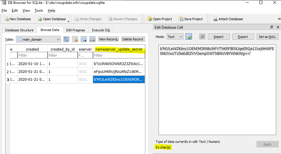 Django tries to update domain secret with a wrong format. The expected format is a string, however we have a binary.