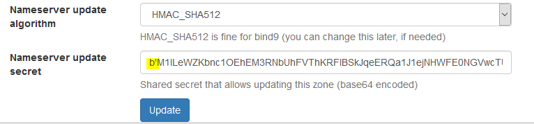 On nsupdate.info my nameserver update secrets are 88 chars long. @ThomasWaldmann do you have an idea?