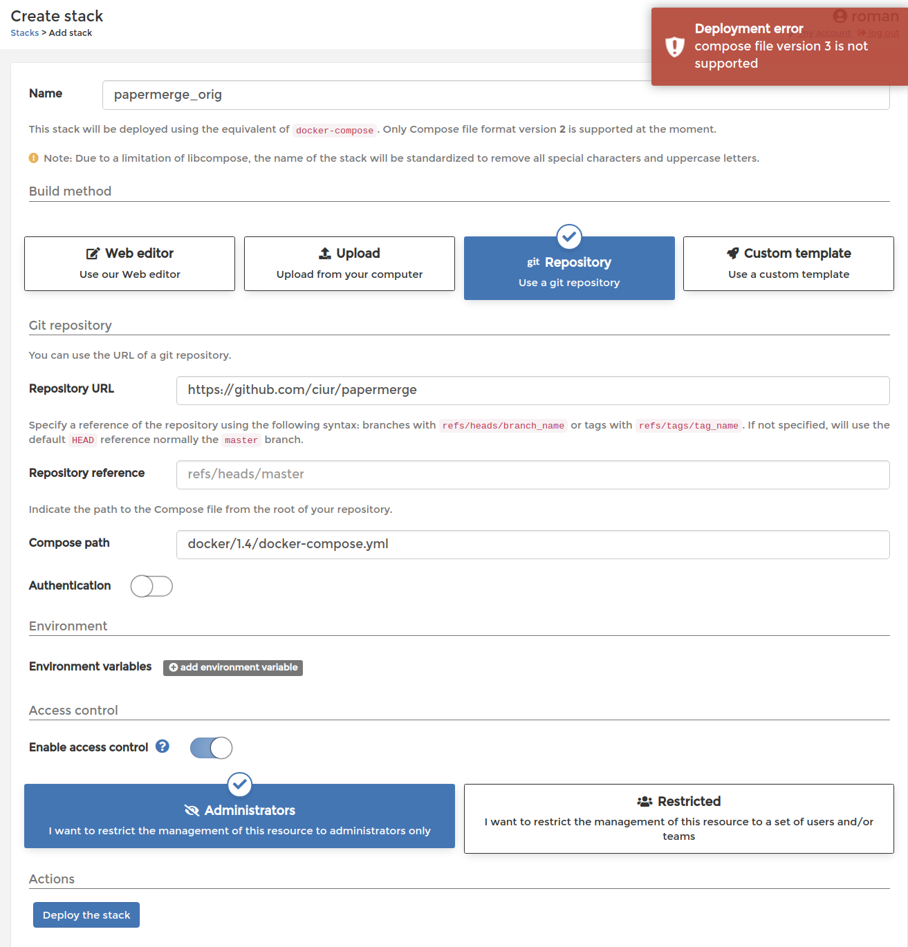 ERROR: Cannot locate specified Dockerfile: app.dockerfileAlso another thing I like in the linuxserver/papermerge docker, is that it has enviroment options for bind volumes. This way if something happens to the Papermerge container, at least the documents would be safe outside the container in the host machine.