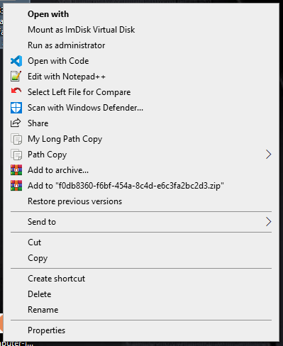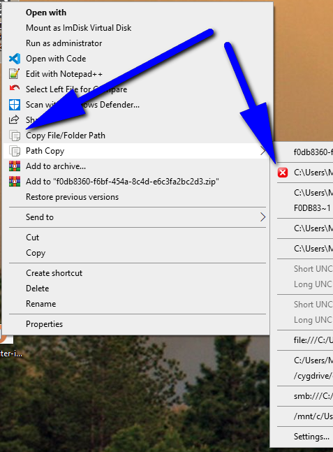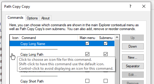 regedit, navigate to theHKEY_CURRENT_USER\Software\clechasseur\PathCopyCopykey and create the following value:Name: UseIconForDefaultPlugin