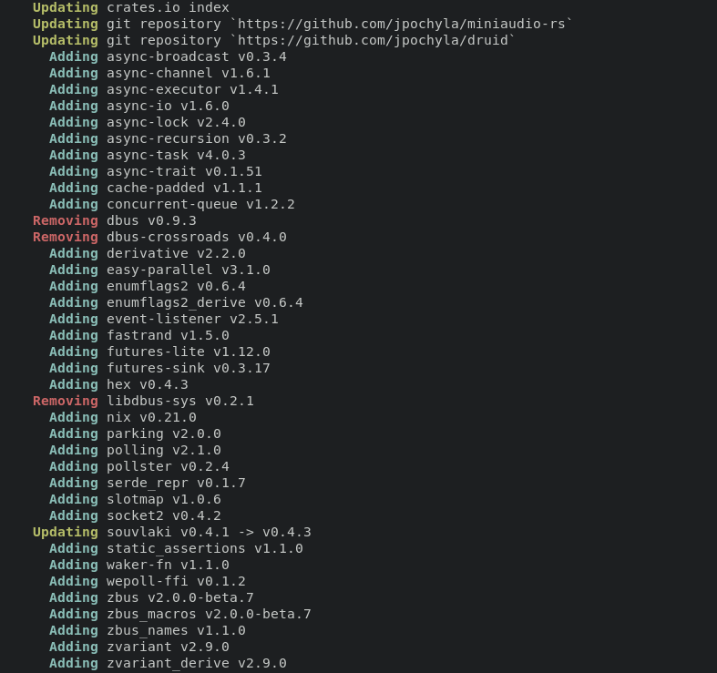 cargo updates all dependencies excludingsouvlakiwhich in the latest version adds a stupid amount of useless dependencies🔄 This issue represents a GitHub Pull Request. It cannot be merged through Gitea due to API limitations.