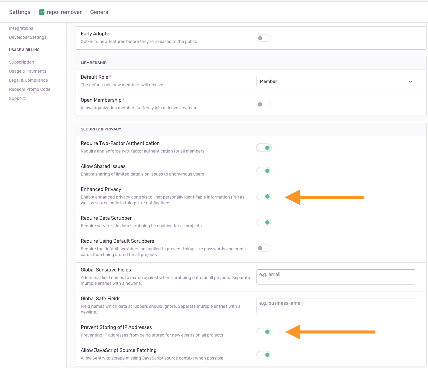 Note: I've setup sentry to not store IP's or any Personally Identifiable Information as it's not needed.