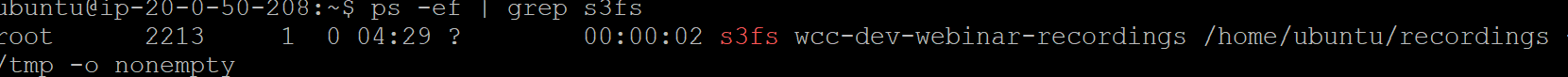 If you mount wcc-dev-webinar-recordings in /home/ubuntu/recordings/tmp, you must set webinar.recording.path to the same directory. Again, s3fs works just like a regular file system so this should not be any different workflow.