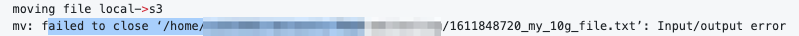 [start=5181210624][size=187498496]) s3fs finalised the multipart request and even if it still got write requests from the application side:the application continue writing till