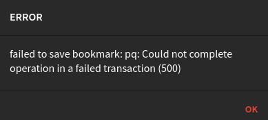 [GH-ISSUE #215] "failed to save bookmark" #157