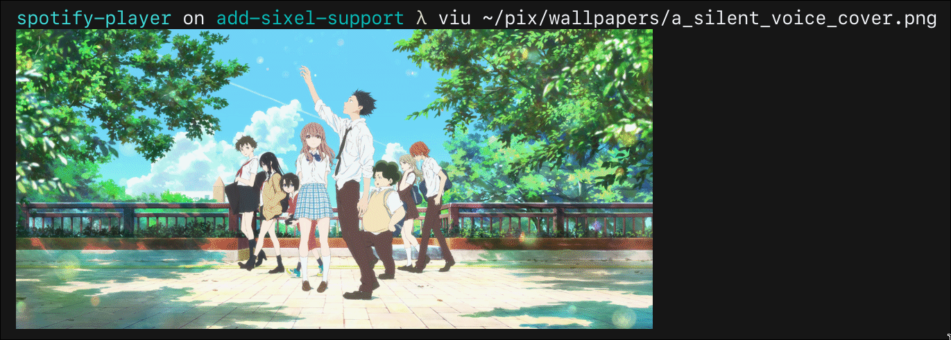 spotify-player(which is amazing, I daily drive it tysm) supports the iTerm2 and Kitty image protocols. It would be great to also have sixel support, which is available on more terminal emulators. Here's a (maybe) useful ressource, for implementing this https://github.com/Siriusmart/youtube-tui/blob/master/src/items/iteminfo.rs@aome510 commented on GitHub (Feb 7, 2023):