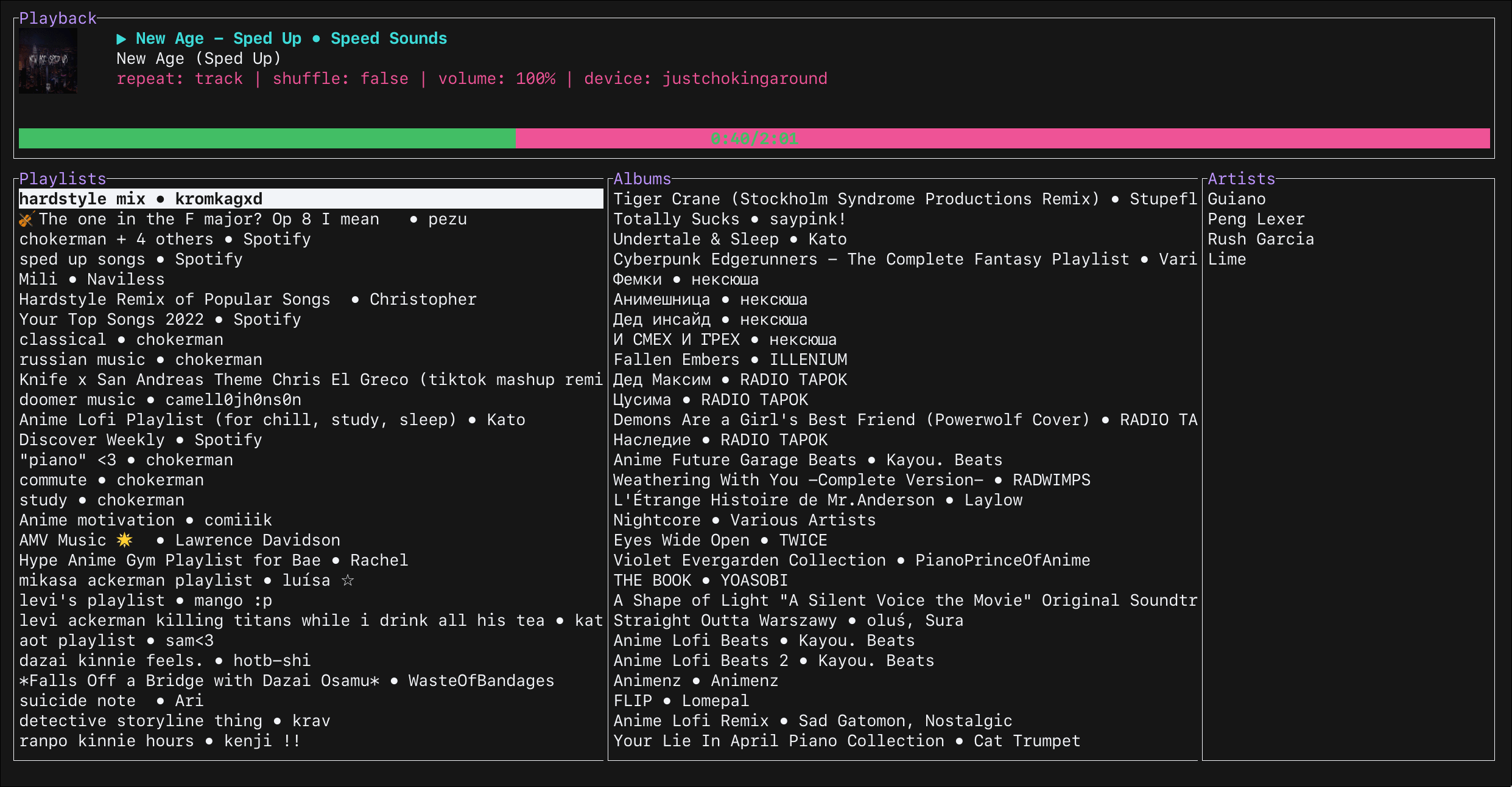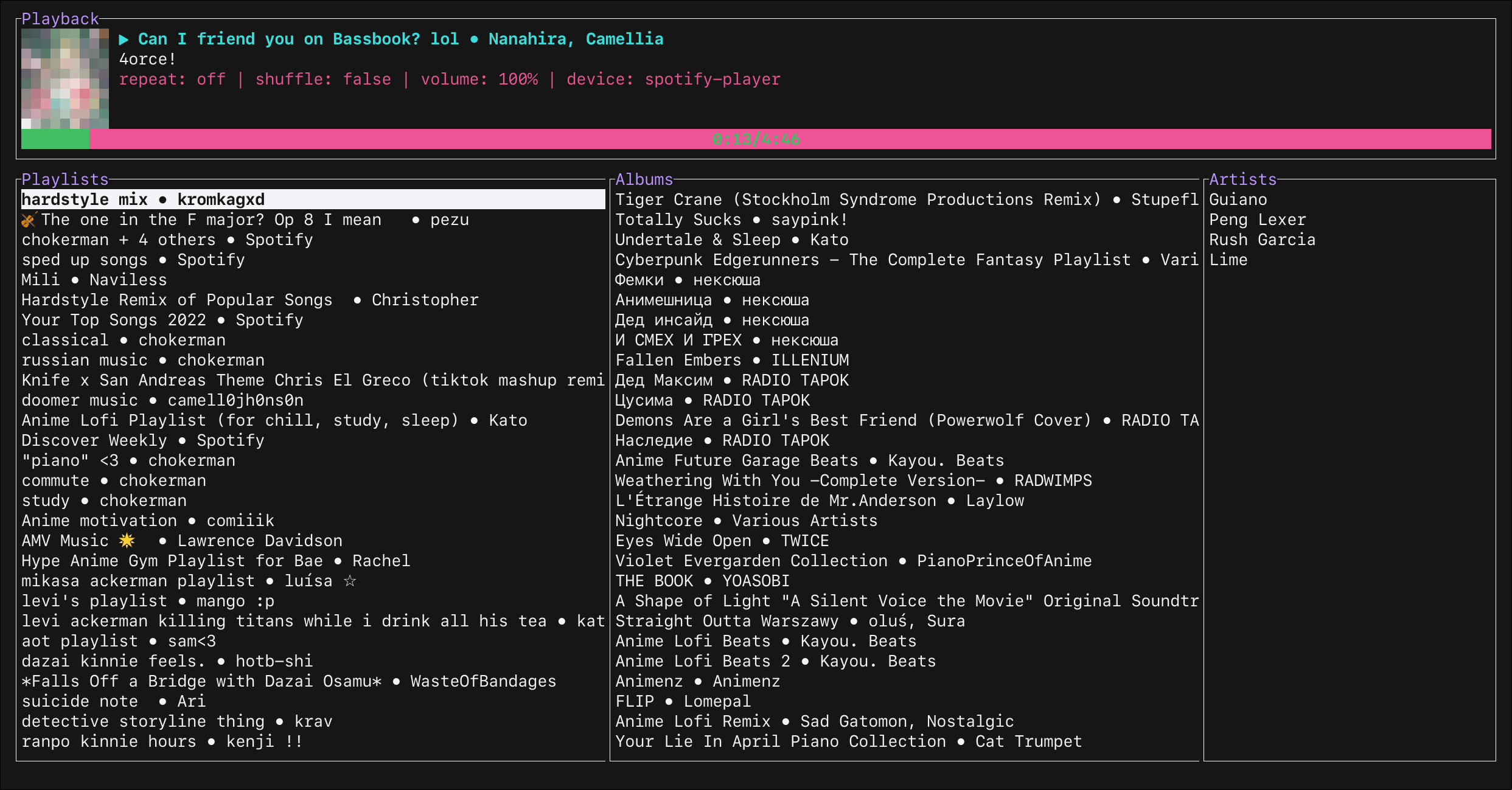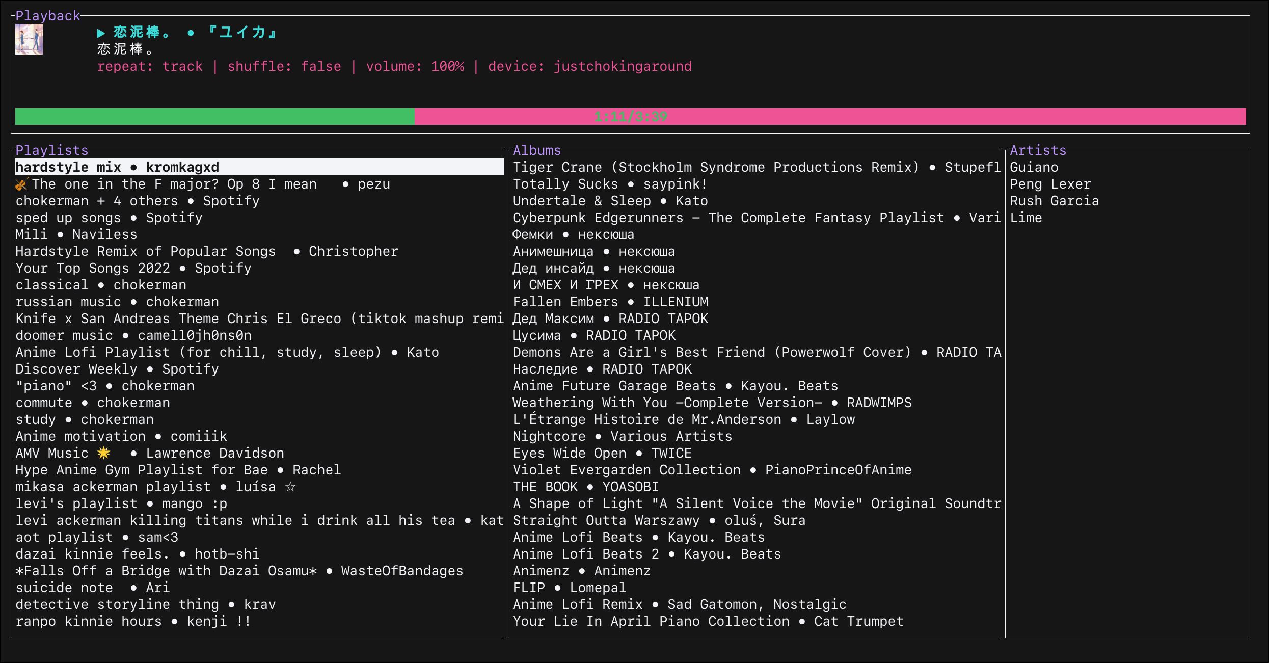 st, the black borders are astsixel bug, so it seems to be working fine. i would appreciate acover_img_spacing, to prevent the characters on the left, and on the right (paused/play icon) from being destroyed.@aome510 commented on GitHub (Feb 18, 2023):