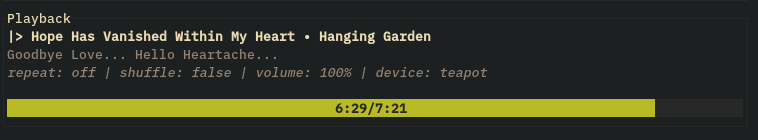 tuiallows us to customize the border's look.I like the way it is now. The theme structure is mostly configurable, so users can customize the look however they want. Making a theme like Spotify's is def fun and it can be put as one of the examples or in the README.