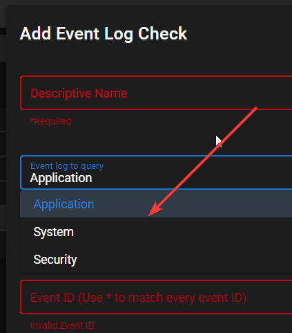 Is it possible to change the event log query to "Event log channel" and allow us to write it in?
