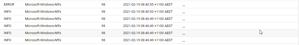 What I wanted to do is put multiple event log checks in however on the NTFS ones filter out anything but C:\ using the event log string check.
