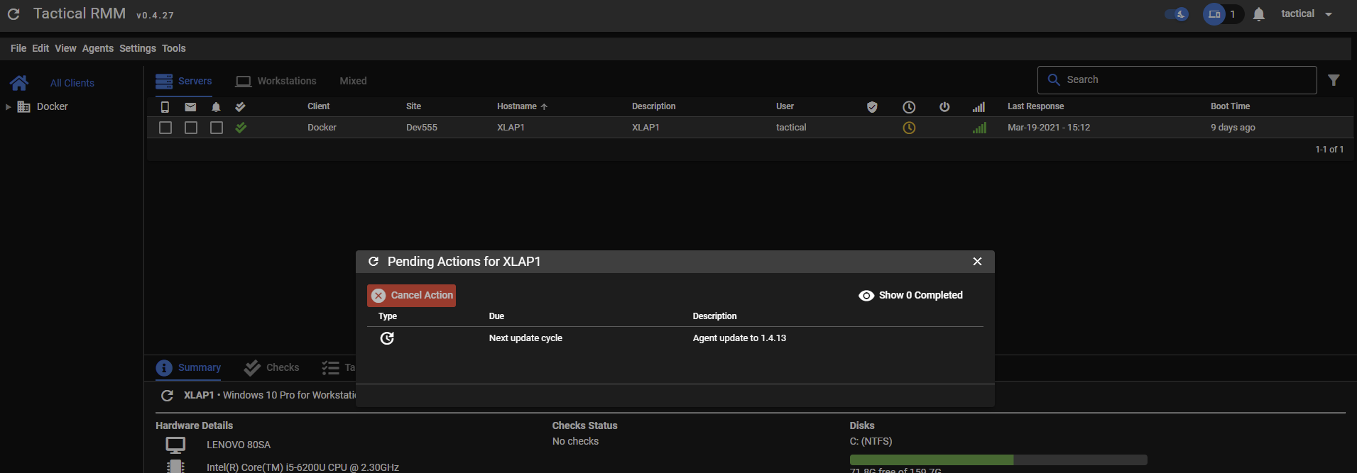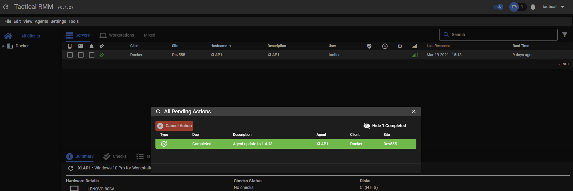 Since agent was online it immediately received the update command, did the update and then around 30 seconds later, pending action is gone cuz it was completed: