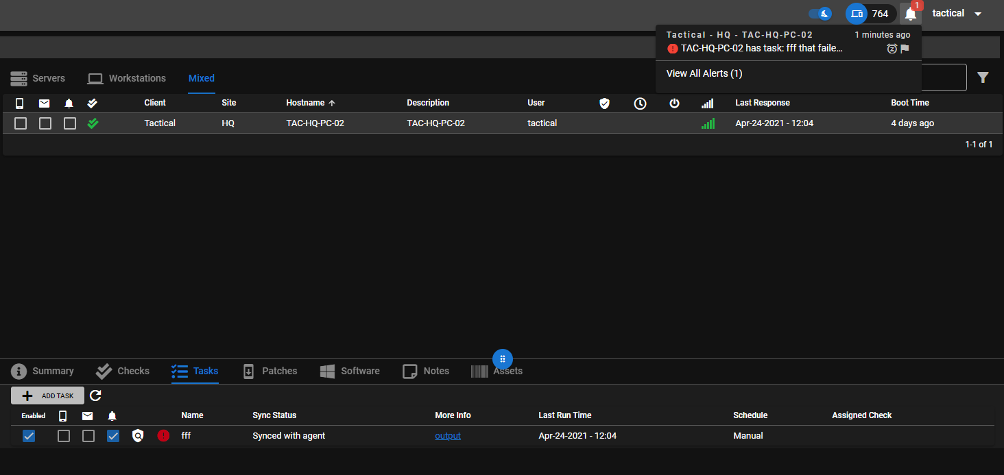 Dashboard alerts do not display after running a task assigned by an automated policy.