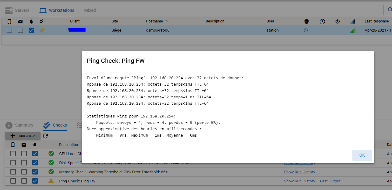 Ping check script report error but ping is ok