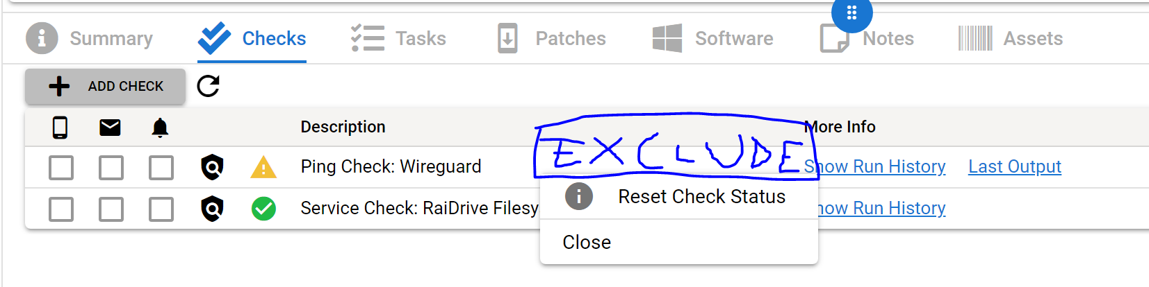 It would be nice to have the checks have some kind of assignment policy so you could define that a certain check only gets deployed on certain agents.