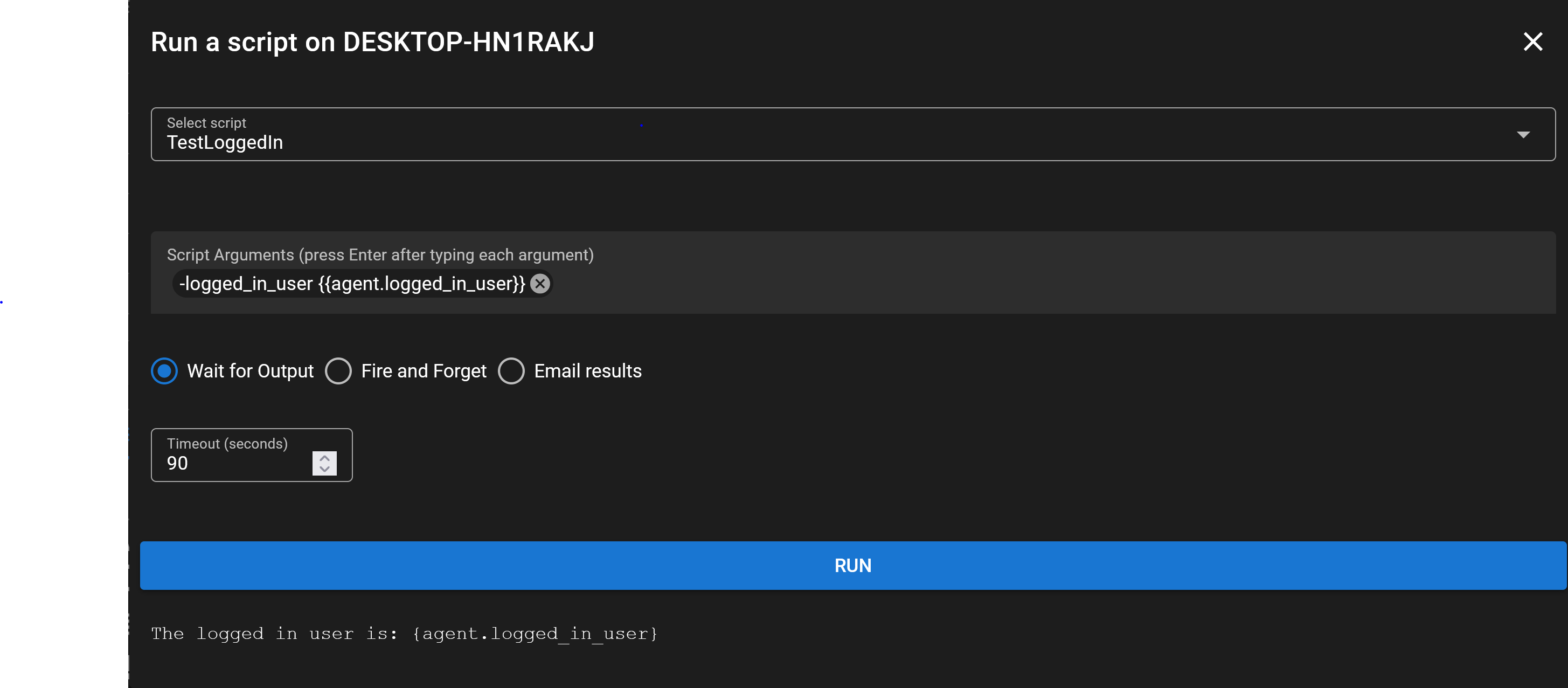 I have tested with all other agent variables as listed at https://wh1te909.github.io/tacticalrmm/script_variables.html. All other variables work except {{agent.logged_in_user}}. I have made sure to go back and use a copy past method with the agent variable to assure that there is no typo etc.