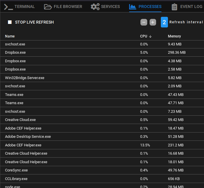[GH-ISSUE #831] Remote Background > Processes. Sort by CPU doesn't seem to sort in any order #2468
