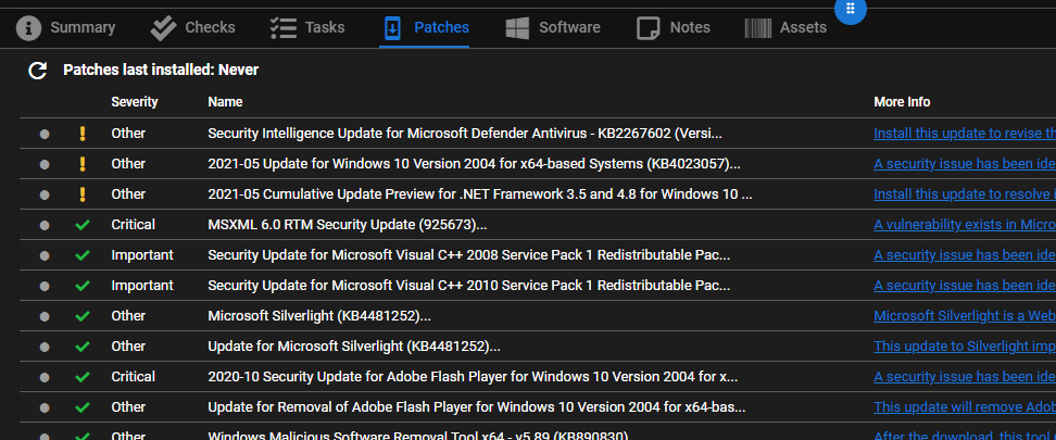 @silversword411 is your issue just that it's showing "Never" or do you also see the "No patches" where the list of windows updates should show up