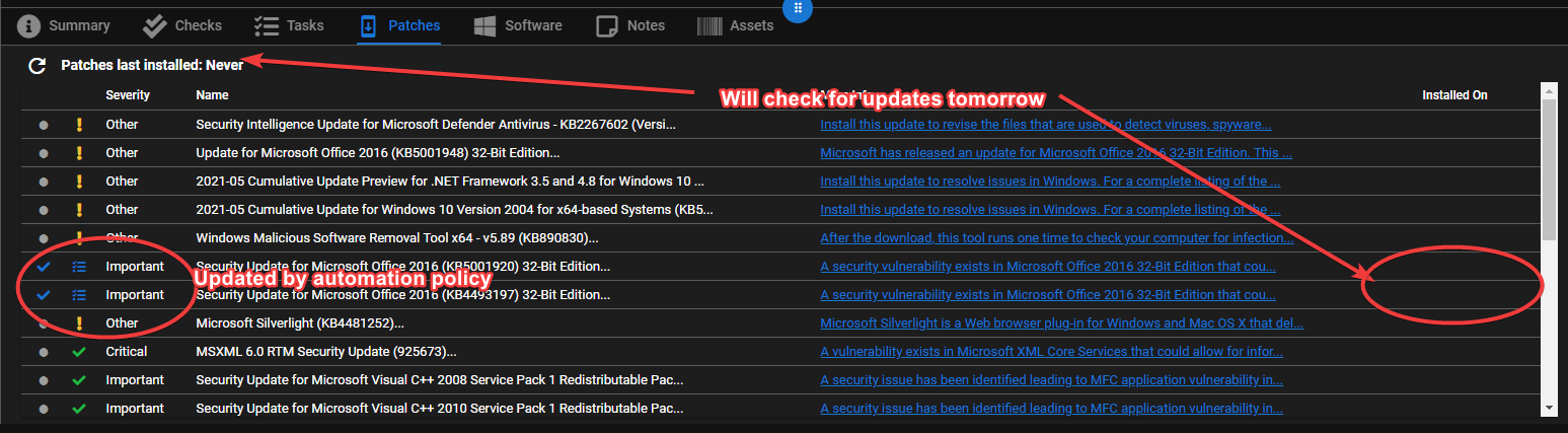 Looks like the 2 marked patches by automation policy did install. The date did update at the top.