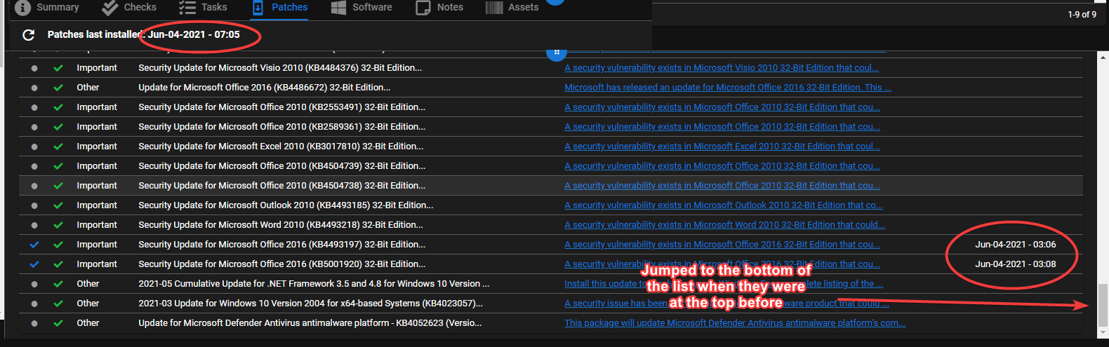 The two patches that installed dropped to close to the bottom of the list though when they were previously at the top, so I get that "patches" list has no rhyme or reason for where they are/sort order.