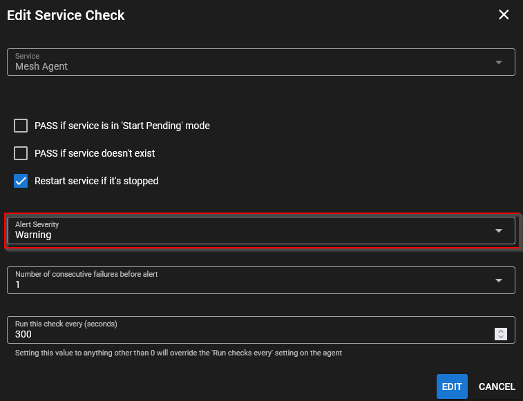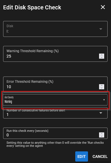 Is it possible to have the "Alert severity" field in the hard disk check form ?