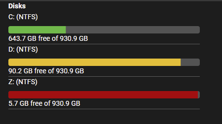 When a drive reaches near capacity, change the colour of the below progress bar accordingly