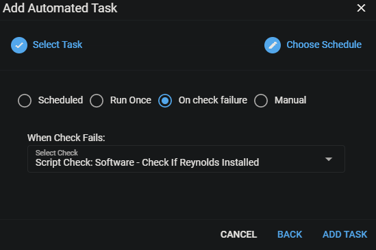 Are you saying can I add the software install into the check script? If so, I can and I'm sure that would work. Just was thinking this way might be more bullet proof as I can see if the task ran or not, but I guess I could script that part as well...