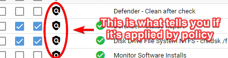 All the way from Global Settings to applying a policy directly to an asset, the asset is not inheriting any Checks or Tasks. Rebooted VM to test and all ran all server maintenance tasks.