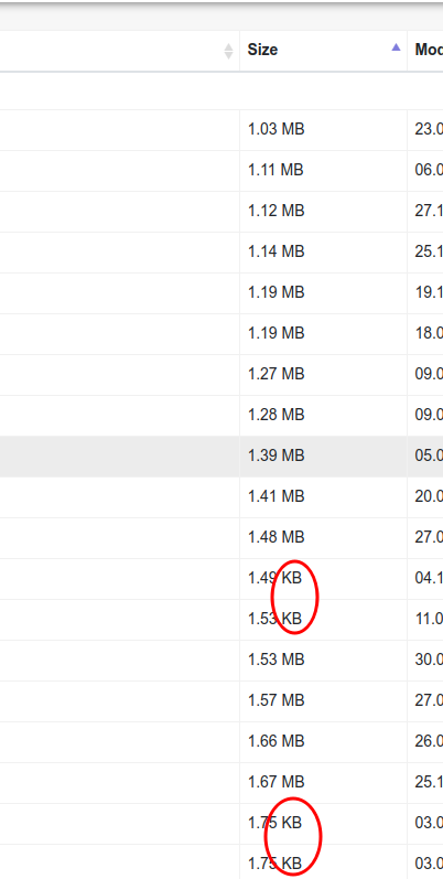 So you can see that KB files are showing below MB files (or vice versa if sorted in a reversed order).