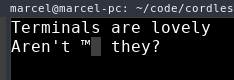 ™in an app using tview. Every tview is displayed as a two-cell character, even though the actualTMis in one cell. Sometimes the second cell is a different color than the rest of theTextViewand sometimes it copies the character above it.I can't figure out when which situation occurs, but here are two screenshots: