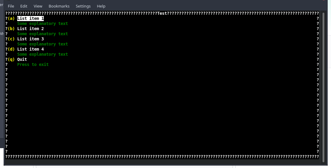 AddItem("List item 4", "Some explanatory text", 'd', nil).