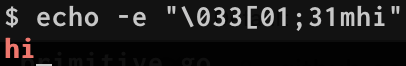 echo -e "\033[01;31mhi"Produces bright/bold red text, butecho -e "\033[01;31mhi" | go run ansi.godoes not show bright red text, just regular red text.This is using the code provided on the ANSI wiki page: https://github.com/rivo/tview/wiki/ANSI.