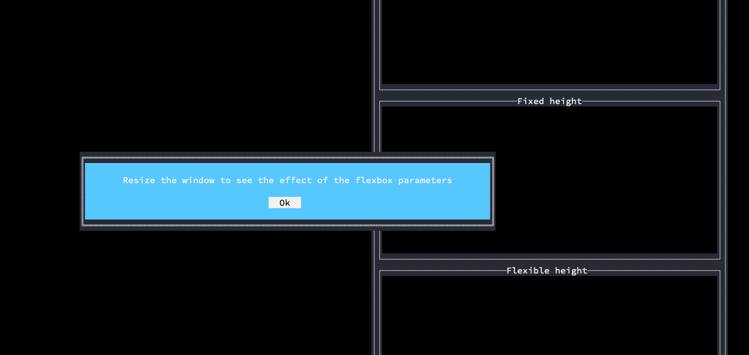 framewhich is private, so cannot workaround it by just updating the border style:github.com/rivo/tview@d551c850a7/modal.go (L49-L51)This PR could help to provide a way to implement a workaround: https://github.com/rivo/tview/pull/458 - but that's just an FYI. I of course do not mind how it is fixed or if it is actually implemented as intended and this is not a bug.