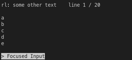 tviewand sorry for the late reply. There are multiple issues at play here. I realized that there was no way to listen for "focus" and "blur" events. So I added these to theBoxprimitive. This should allow you to change an input field's appearance when it's selected. See https://pkg.go.dev/github.com/rivo/tview#Box.SetFocusFunc and https://pkg.go.dev/github.com/rivo/tview#Box.SetBlurFunc (and the example below).Secondly, not being able to use SGR 7 is indeed related to #611. For now, I've added