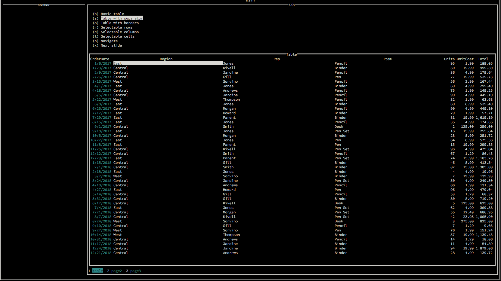 I will have to use between setfoucs and run to make it work, even though I have the code: AddItem(table, 0, 1, true). Your presentation code does not explicitly declare SetFoucs other than the Navigate function. It works but I just couldn't figure this out why.