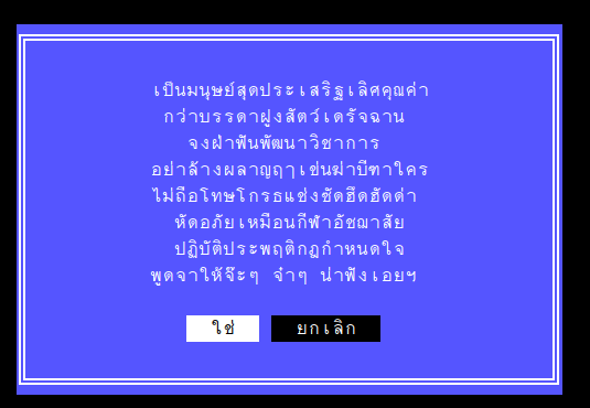 เป็นมนุษย์ สุดประเสริฐ เลิศคุณค่า กว่าบรรดา ฝูงสัตว์ เดรัจฉาน จงฝ่าฟัน พัฒนา วิชาการ อย่าล้างผลาญ ฤๅเข่นฆ่า บีฑาใคร ไม่ถือโทษ โกรธแช่งซัด ฮึดฮัดด่า หัดอภัยเหมือน กีฬา อัชฌาสัย ปฏิบัติ ประพฤติกฎ กำหนดใจ พูดจาให้จ๊ะ ๆ จ๋า ๆ น่าฟังเอยฯfunc main() {