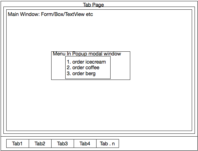 This modal page is taking a tab page and it is not naturally belongs to the tab pages. If I need one modal window as menu for a tab page for some operations, there would be too many pages used for the modal windows. To avoid displaying the modal window page, when I render the tab number and switch logic, I will have to put special logic for it