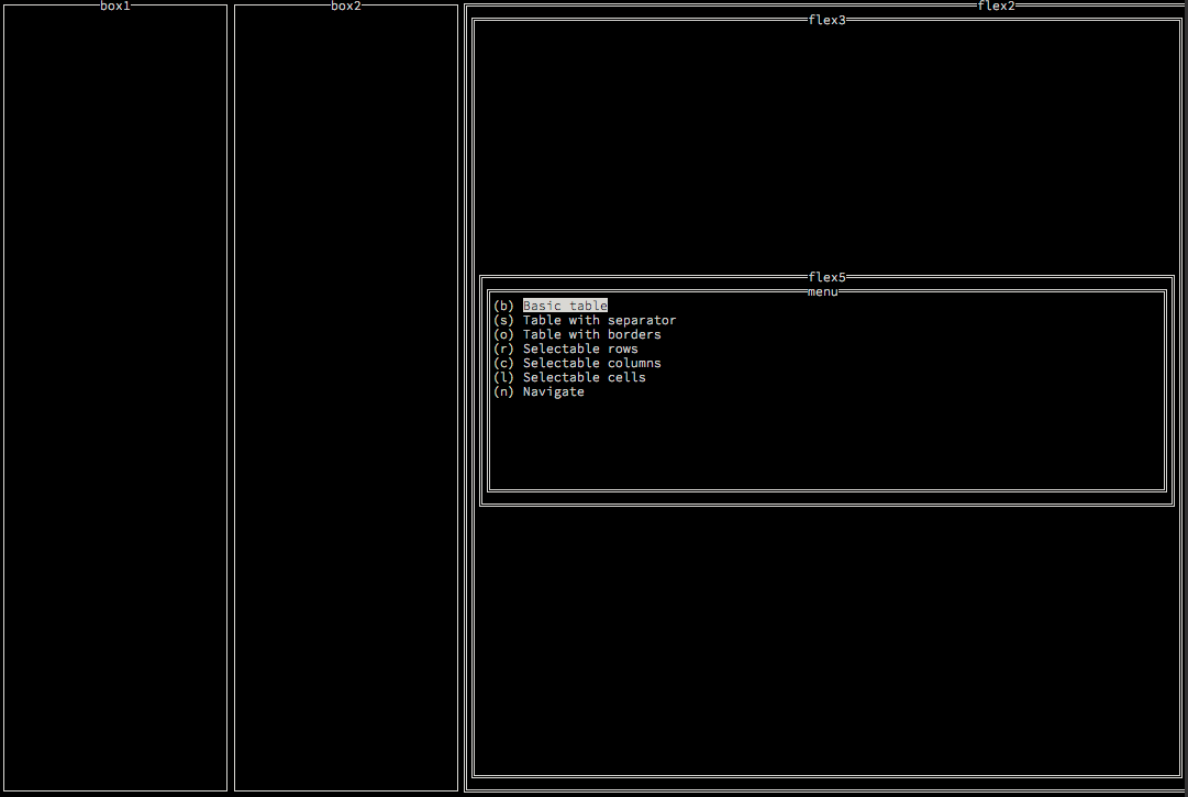 niloption forFlexlayouts was there but it wasn't fully implemented. With the latest commit,FlexandGriddon't clear their background per default anymore. So if you havenilitems, other primitives below won't be erased. UsingGridto create a modal is actually even easier.I put an example in the Wiki: https://github.com/rivo/tview/wiki/Modal