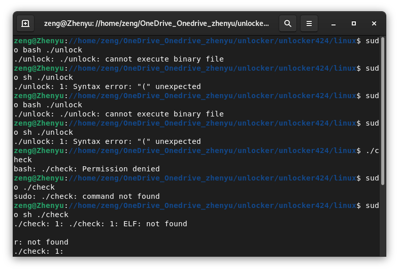 sudo ./unlockThe unlocker is a Go compiled binary file not a shell script.