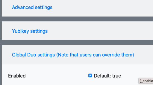 Well looking at the Admin Panel, _ENABLE_DUO=true is enabled by default, so I am not sure what this would do?