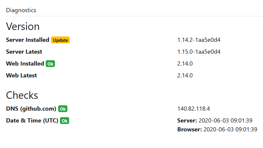 When I recreated my docker container and pulled latest I ended up with the same result, Web being up-to-date but Server being still on 1.14.2.