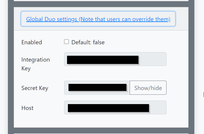 Upon start/restart Duo setting in /admin changes from enabled: true to enabled: false