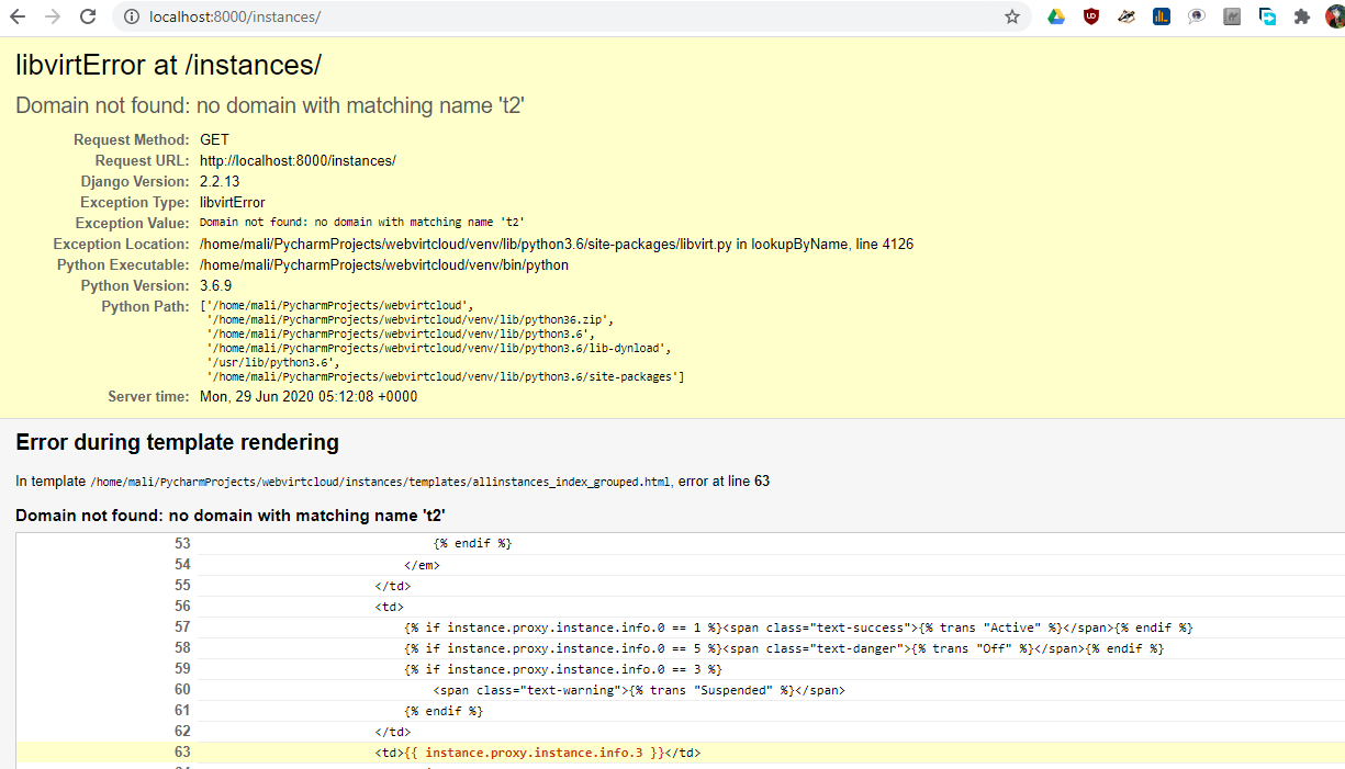 if an instance removed from libvirt but not webvirtcloud database it causes error and does not load allinstances page.