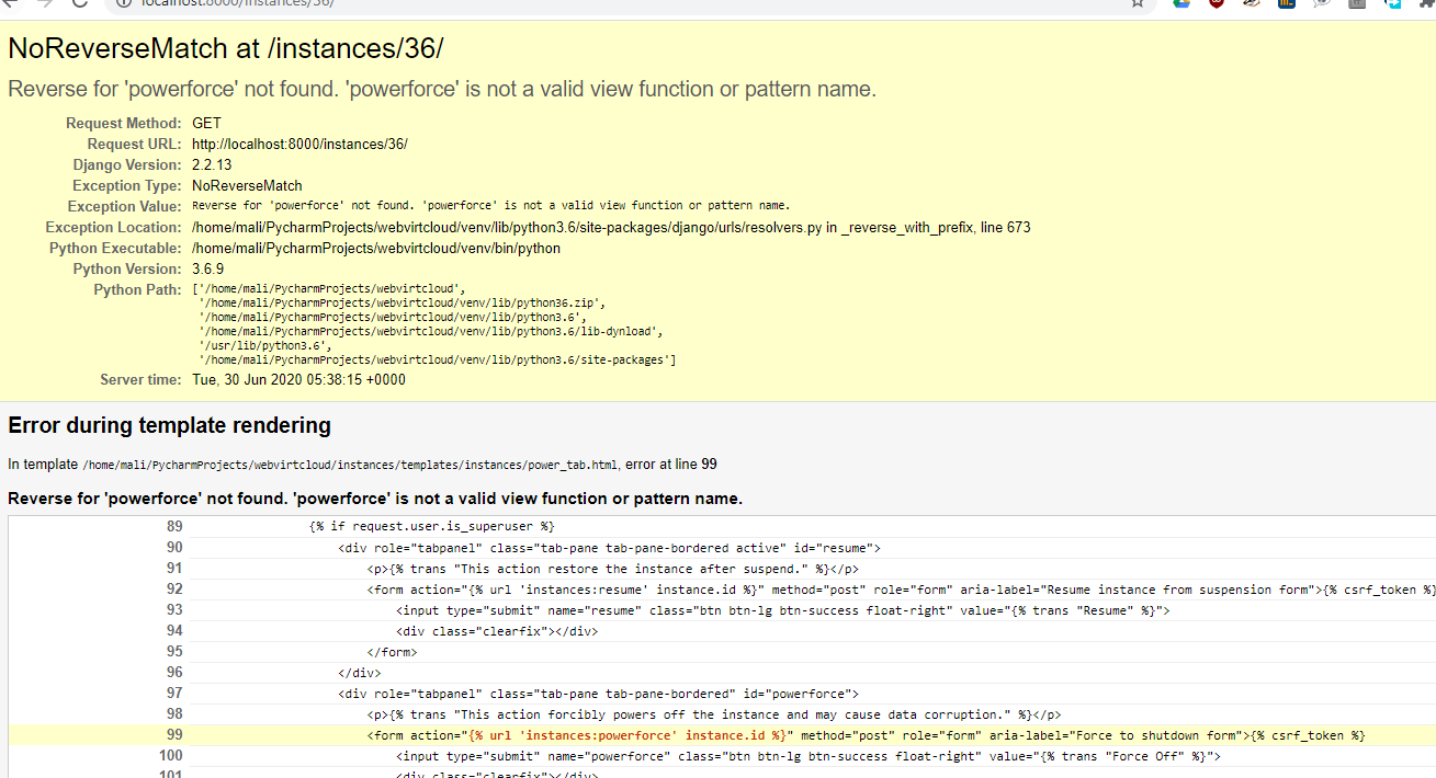 -> http404 error, click return: instance not found error