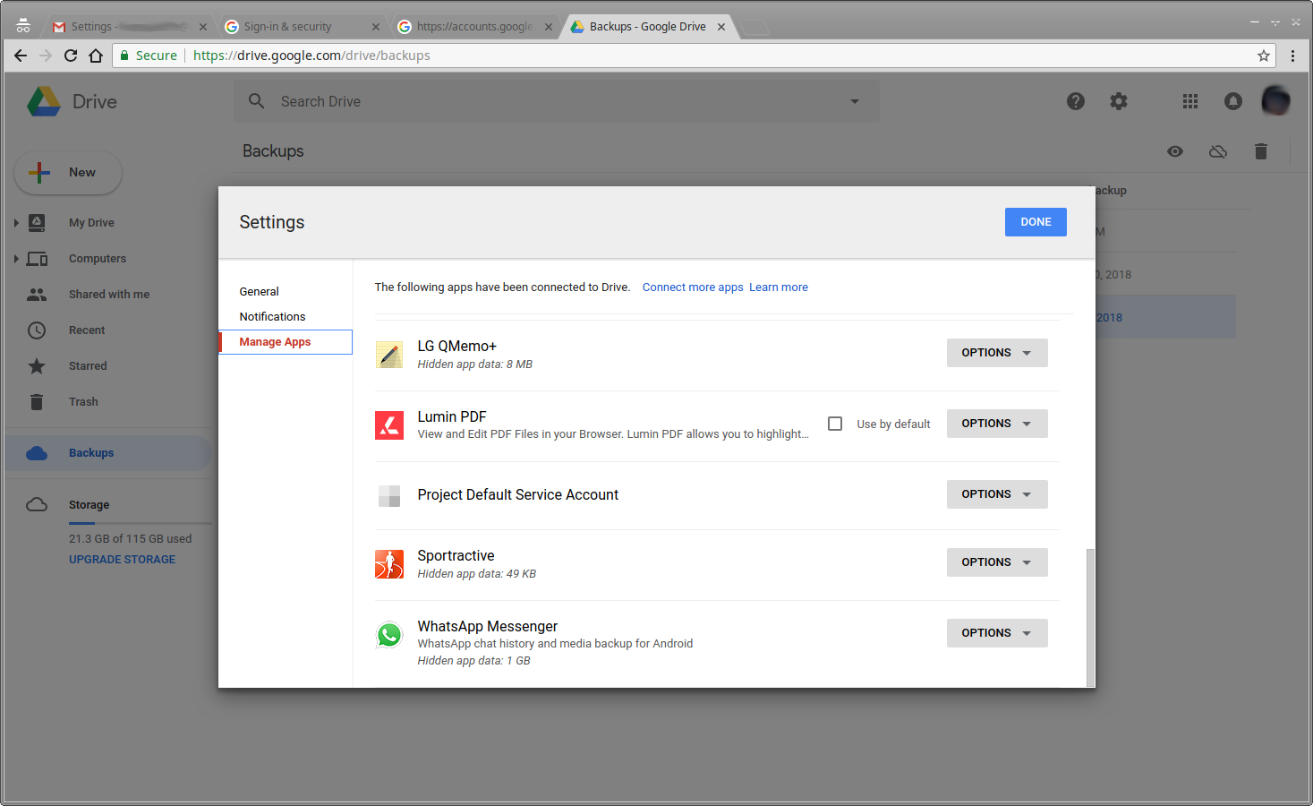 Now her Google Drive Account still shows "Hidden app data: 1 GB" under https://drive.google.com -> Settings -> Manage Apps -> WhatsApp Messenger
