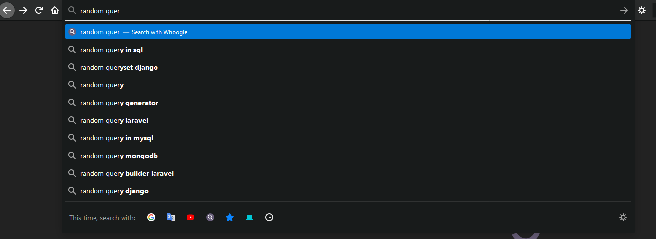 I would imagine that it would work like other search engines - You start typing query into the address bar at the top and once you press enter, it takes you to the result page of the search engine. However, what happens in my case is that it only takes me to the main Whoogle page and I have to type in the search query again into the Whoogle site - is this how that's supposed to be? If not, is there anything I could try to fix it? Thank you very much.