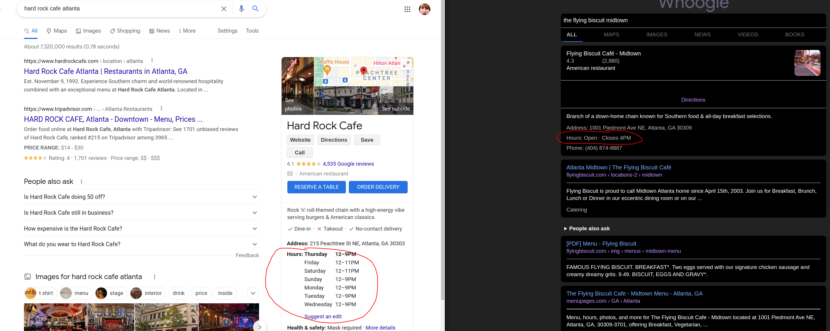 When whoogle returns a specific place as the result it displays open/close status and what time it opens/closes.