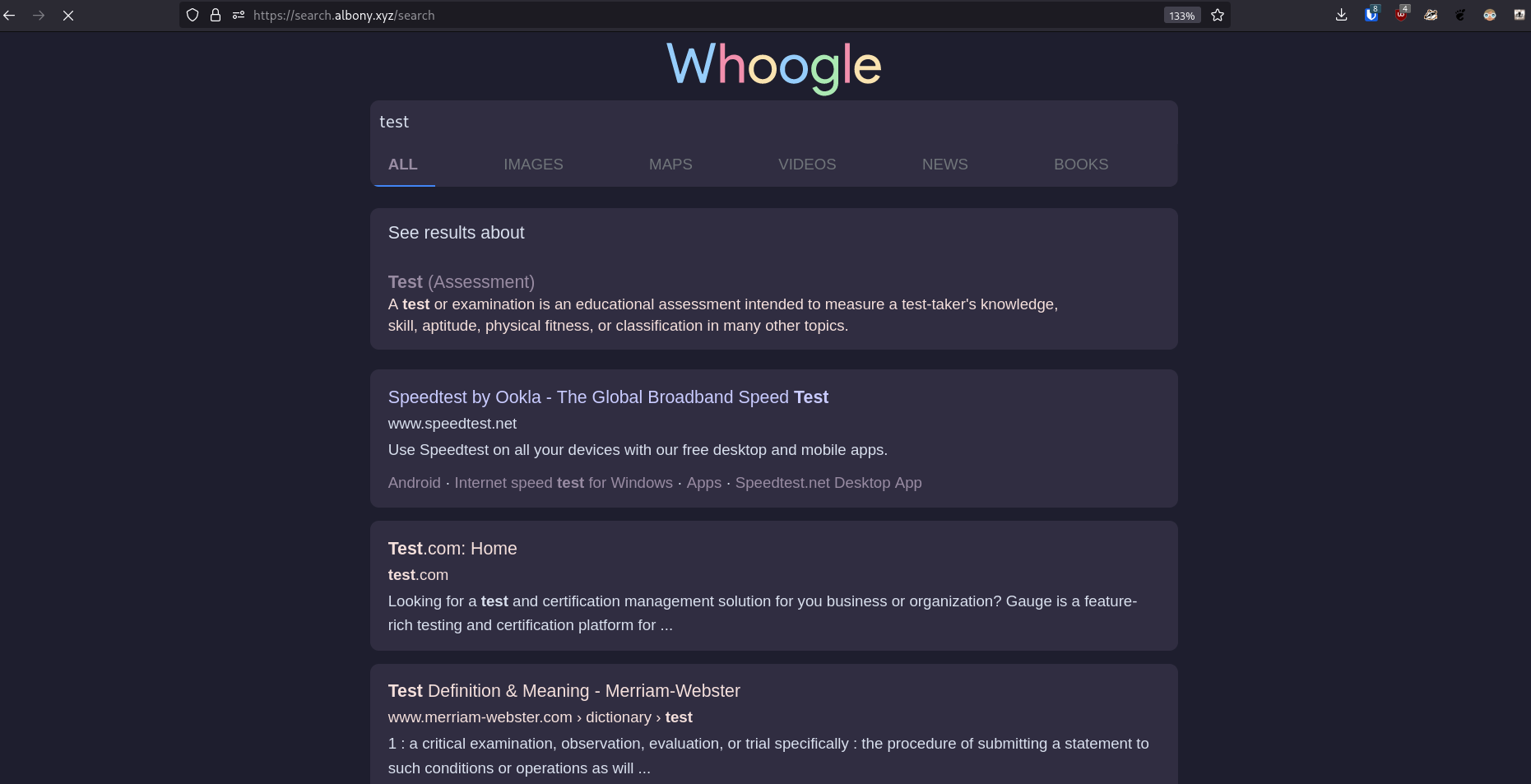 http://search.sethforprivacy.com/?cookies_disabled=1(see 3.)http://whoogle.lunar.icu/?cookies_disabled=1(see 3.)http://s.alefvanoon.xyz/?cookies_disabled=1:http://search.albony.xyz/?cookies_disabled=1:Refreshing the page redirects to the HTTPS version in all cases. All other links worked fine.
