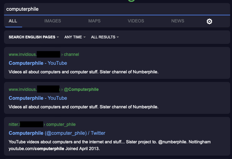 I've noticed that in the search results page, Nitter, which works as intended, shows the preview URL as "nitter.local.domain". YouTube and Reddit have www prepended (e.g. www.invidious.local.domain, www.libreddit.local.domain). I have not changed hostnames in my router, nor have I changed the environment file from Whoogle (which was working, and has them listed as nitter.local.domain). Screenshot is attached.