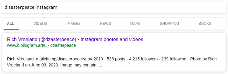 Search a instagram username. whoogle will show instagram link for search result either about youtube